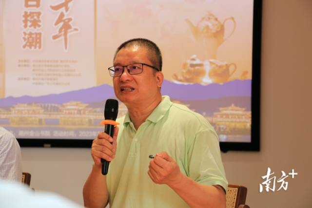 李炳炎参加“金山观潮”读城分享会,向观众介绍潮州古代陶瓷生产发展情况。黄敏璇 摄